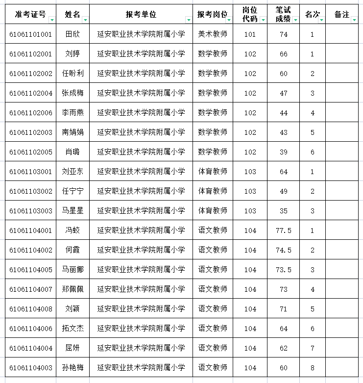 现将2021年延安职业技术学院附属小学公开招聘教师笔试成绩予以公布,请各有关考生在公告发布网站予以查询。