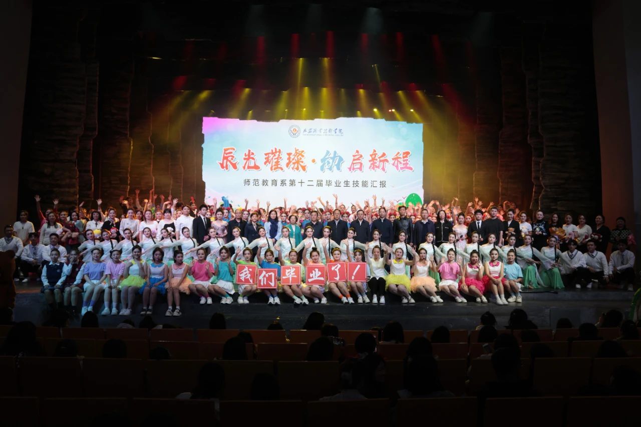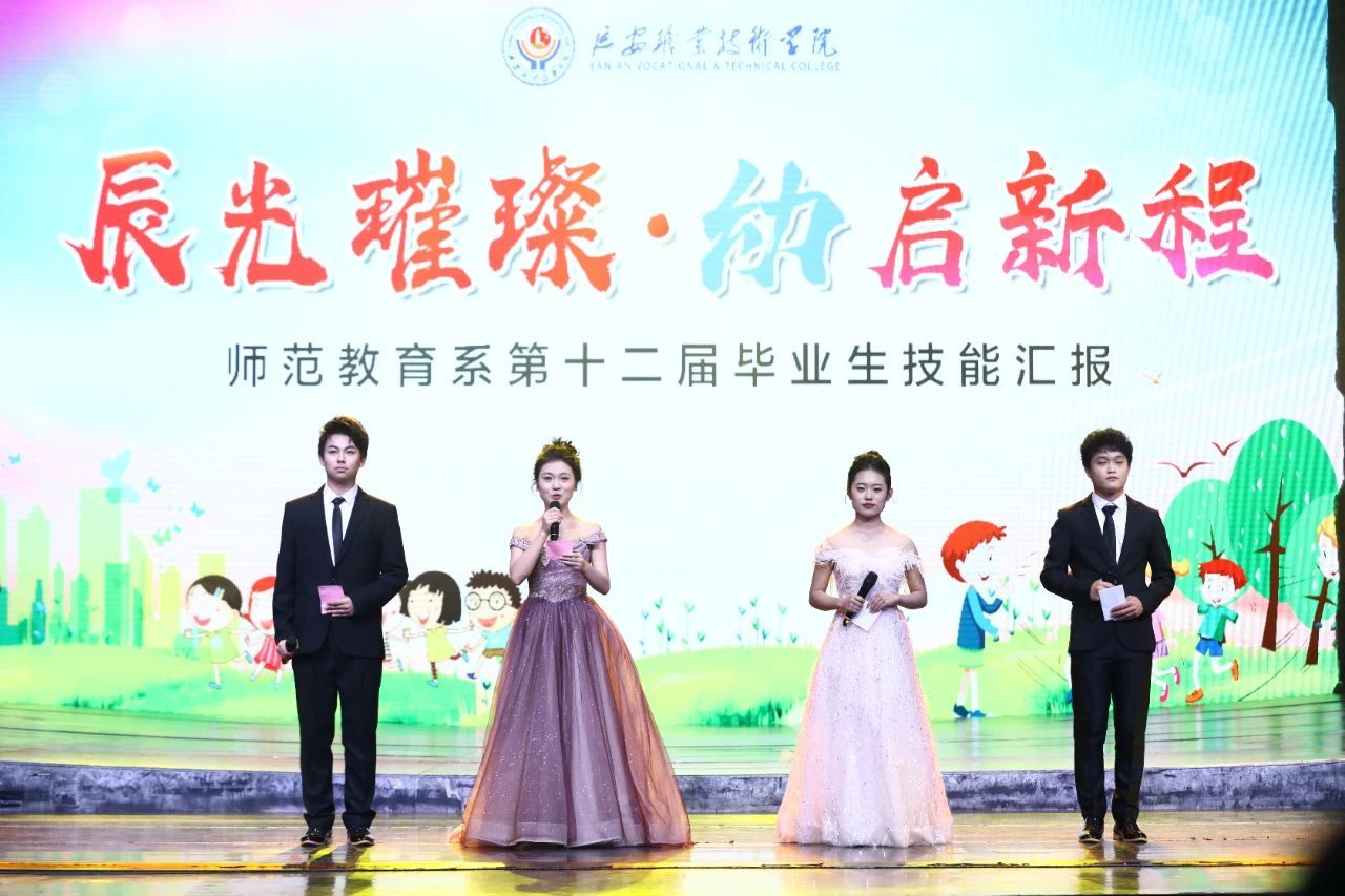 11月8日下午,延安职业技术学院师范教育系第十二届毕业生技能汇报演出,在枣园东方红大剧院成功举办。学院党委书记冯奇海,党委副书记、院长牛永红等院级领导,学院各部门负责人及合作的多所幼儿园负责人到现场观看演出。同时,本次汇报演出还开通了线上直播,共有2000多名观众观看了精彩纷呈的节目,并在直播间热情互动。