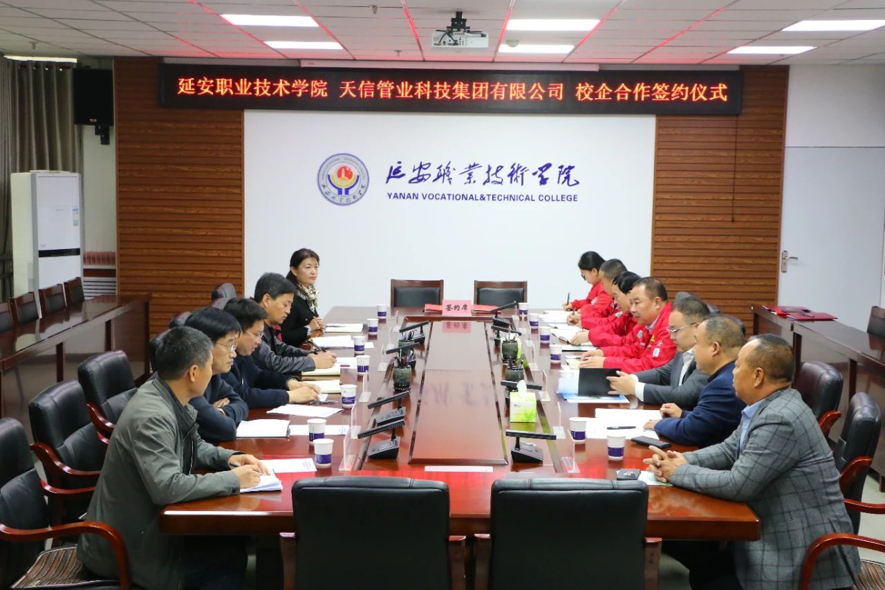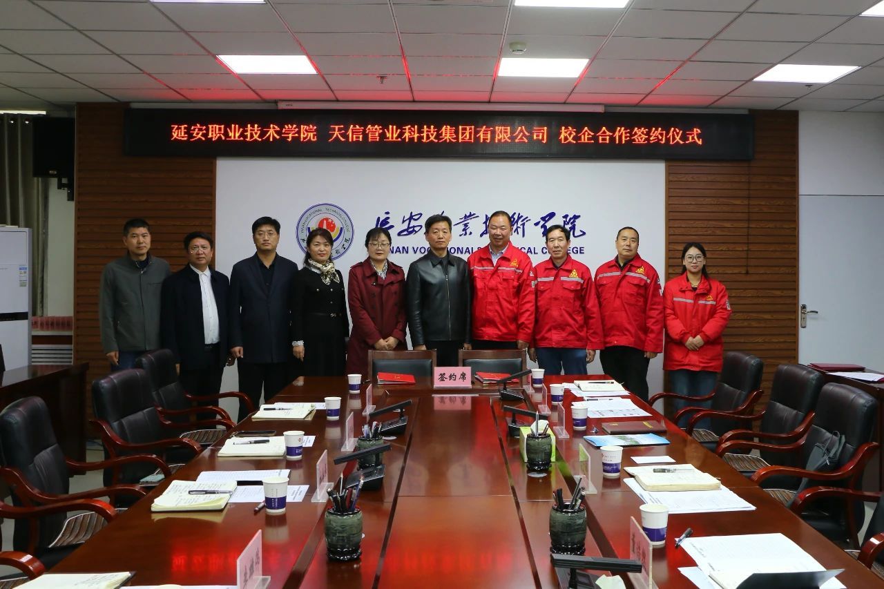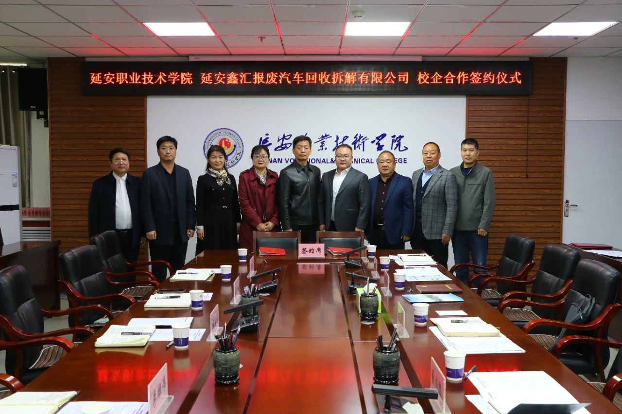 11月11日上午,延安职业技术学院举行校企合作签约仪式,学院党委委员、副院长杜善保,天信管业科技集团有限公司董事长闫文科、鑫汇报废汽车回收拆解有限公司董事长董浩然出席签约仪式,学院教务处、科研处、机电工程系及企业有关负责人参加。
