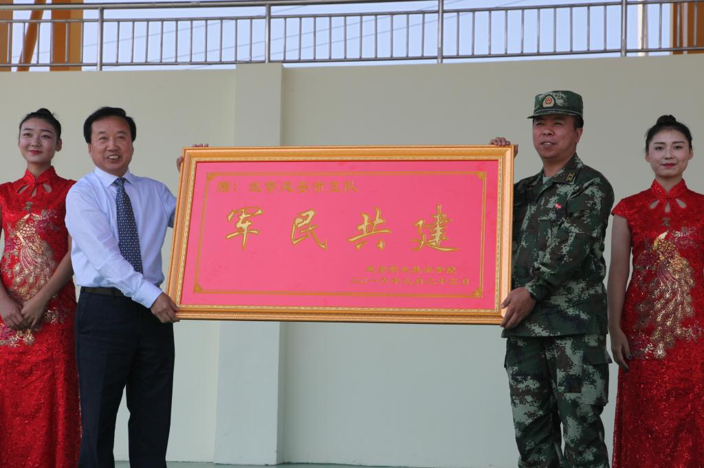 在会议现场,学院向武警延安支队赠送了“军民共建”牌匾。