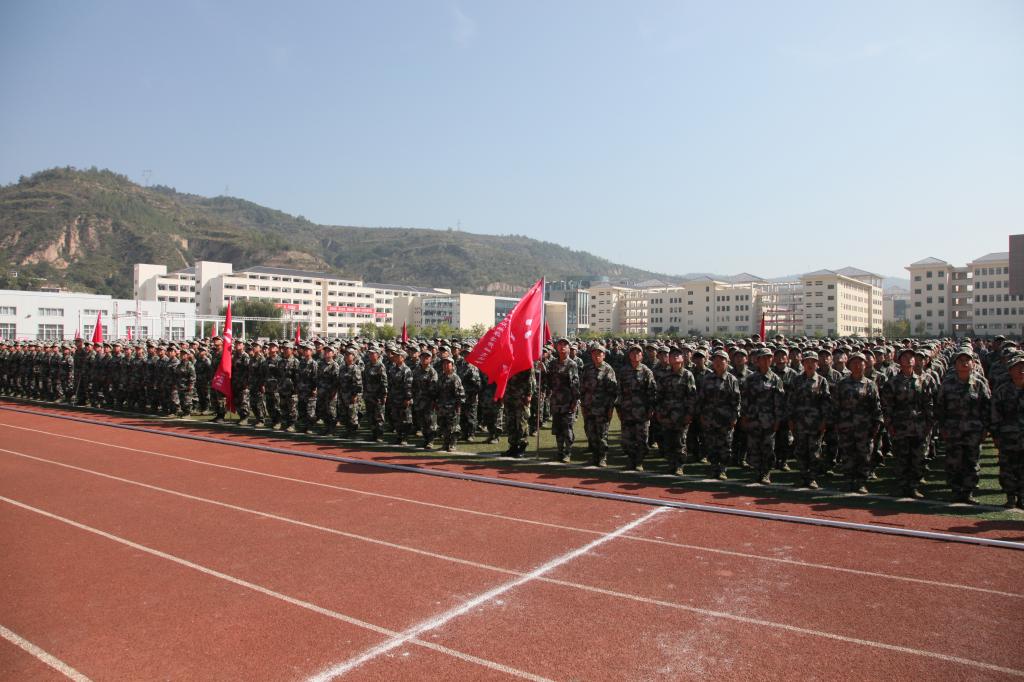 9月23日上午,学院在体育场举行2016--2017学年开学典礼暨2016级新生国防教育总结表彰大会。延安武警支队副参谋长李军、学院党委书记呼世杰及全院8000多名师生参加了大会。