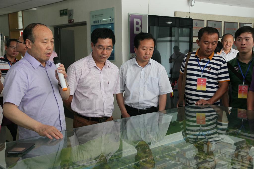 在学院沙盘前,高福华为陈礼民一行介绍了学院基本情况,教务处副处长熊军林介绍了学院实训条件及建设情况。随后,来访者参观了我院机电、化工、航海等专业的实训室和实训工厂。参观途中,双方领导和相对应部门间进行了轻松全面地沟通与交流。