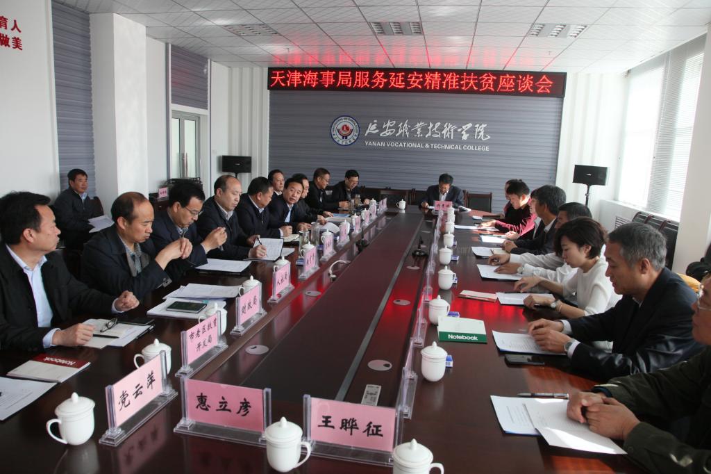4月21日,天津海事局、延安市政府、延安职业技术学院在延安职业技术学院召开“天津海事局服务延安精准扶贫座谈会”。