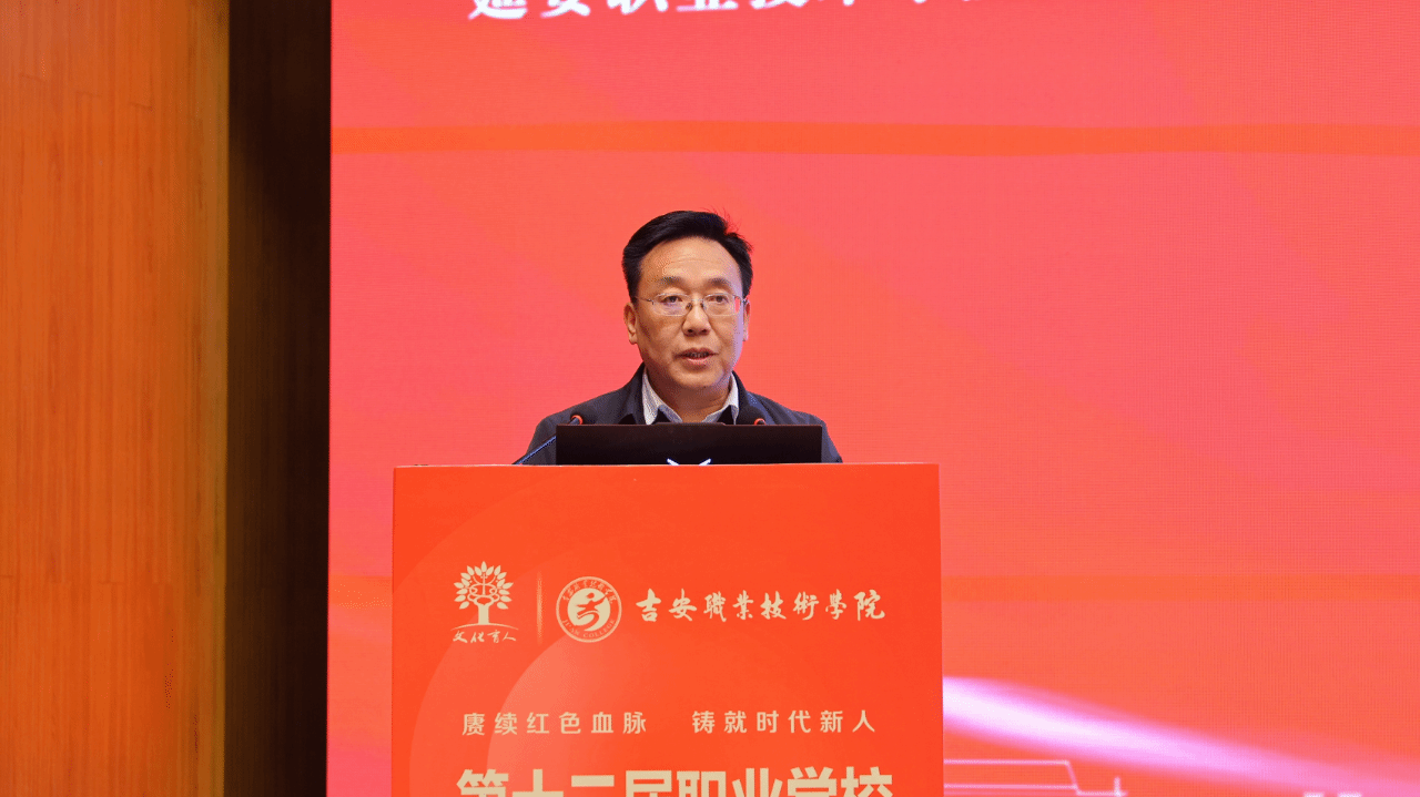 11月28日,学院党委书记冯奇海应邀出席教育部职业院校文化素质教育指导委员会主办的第十二届职业院校“文化育人”论坛,并作交流发言。大会由吉安职业技术学院承办。来自全国200余所职业院校的300余名领导、专家以“赓续红色血脉,铸就时代新人”为主题,共商职业院校“文化育人”之道。8位职业院校代表从院校实践、创新经验等方面作交流分享。