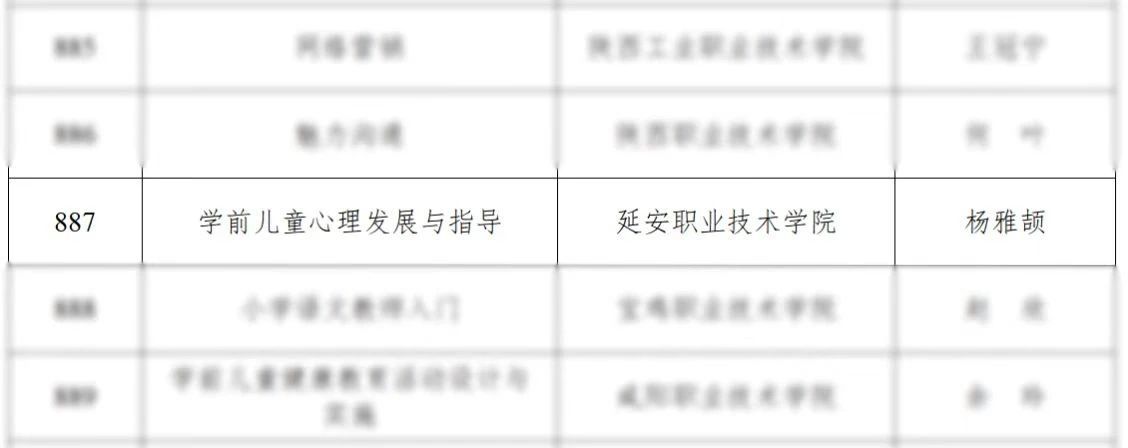 12月9日,教育部公布了2023年职业教育国家在线精品课程名单,延安职业技术学院师范教育系副教授杨雅颉主持的《学前儿童心理发展与指导》课程成功入选,这是我院继《创新创业基础》课程之后,第二门国家级在线精品课程。