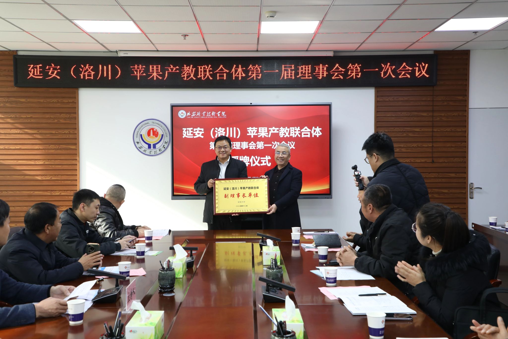 成立大会后,与会人员召开了延安(洛川)苹果产教联合体理事会第一次会议。审议并通过了《延安(洛川)苹果产教联合体章程》,选举产生了联合体第一届理事会。