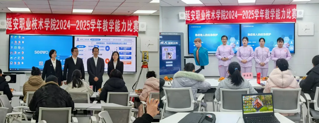 同台竞技淬炼教学真功,以赛促教锻造工匠之师。1月9日-10日,延安职业技术学院举行2024-2025学年教学能力校赛。比赛由学院教务处承办,各系(院、部)教学管理人员和教师代表观摩比赛。