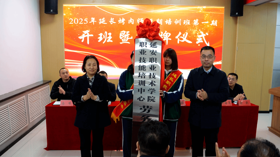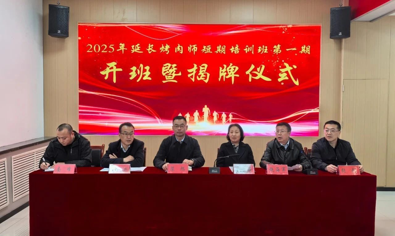 3月14日下午,2025年延长烤肉师短期培训班开班暨延安职业技术学院职业技能培训中心劳务品牌培训基地揭牌仪式在延长县举行。学院党委委员、副院长陈旭,延长县人民政府副县长王敏茹出席,学院职业技能培训中心相关负责人、延长县教体局、延长县人力资源和社会保障局相关负责人,延长县职业教育中心负责人,任家二后生延长烤肉董事长任小强及首批参培学员参加了此次活动。