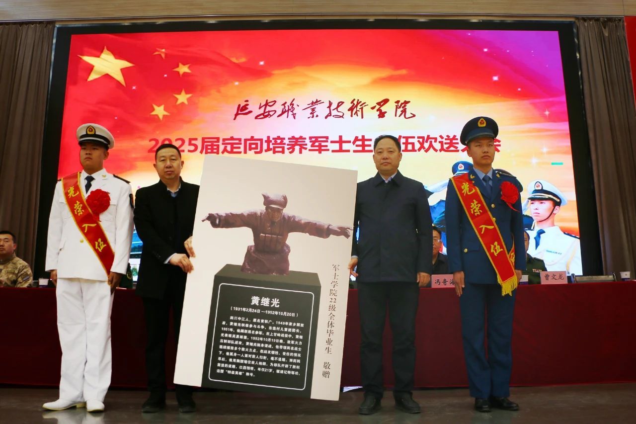 仪式中,2025届军士生代表与学院互赠了纪念品,现场颁发了入伍通知书。入伍军士生进行了宣誓,师生及家长代表进行了发言。
