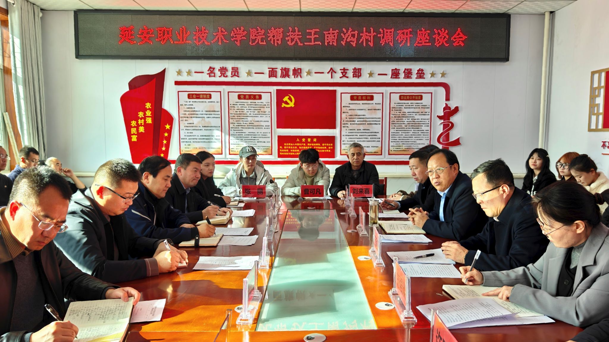 志丹县侯市便民服务中心党政负责人、王南沟村两委成员与驻村工作队,学院工会、艺术系、石油和化学工程系负责人及农林与建筑工程系专业教师参加。(审核丨惠立彦,撰稿丨齐珺琰,摄影、编辑丨刘盼龙)