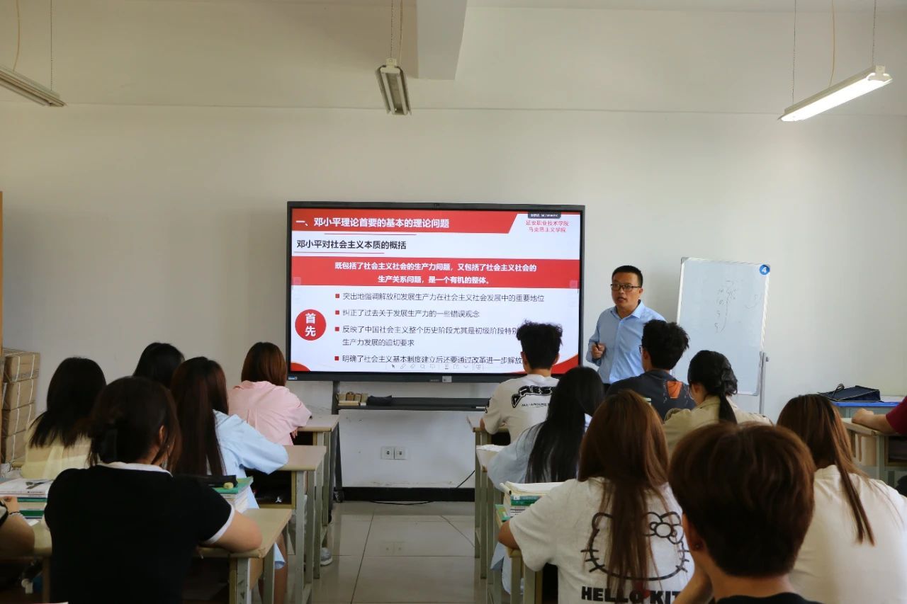 6月6日上午,学院党委书记冯奇海,党委副书记党云萍,党委副书记、纪委书记刘晓霞到农林与建筑工程系2024级室内设计2班,听取了马克思主义学院院长樊建荣副教授为学生讲授的《毛泽东思想和中国特色社会主义理论体系概论》课程。