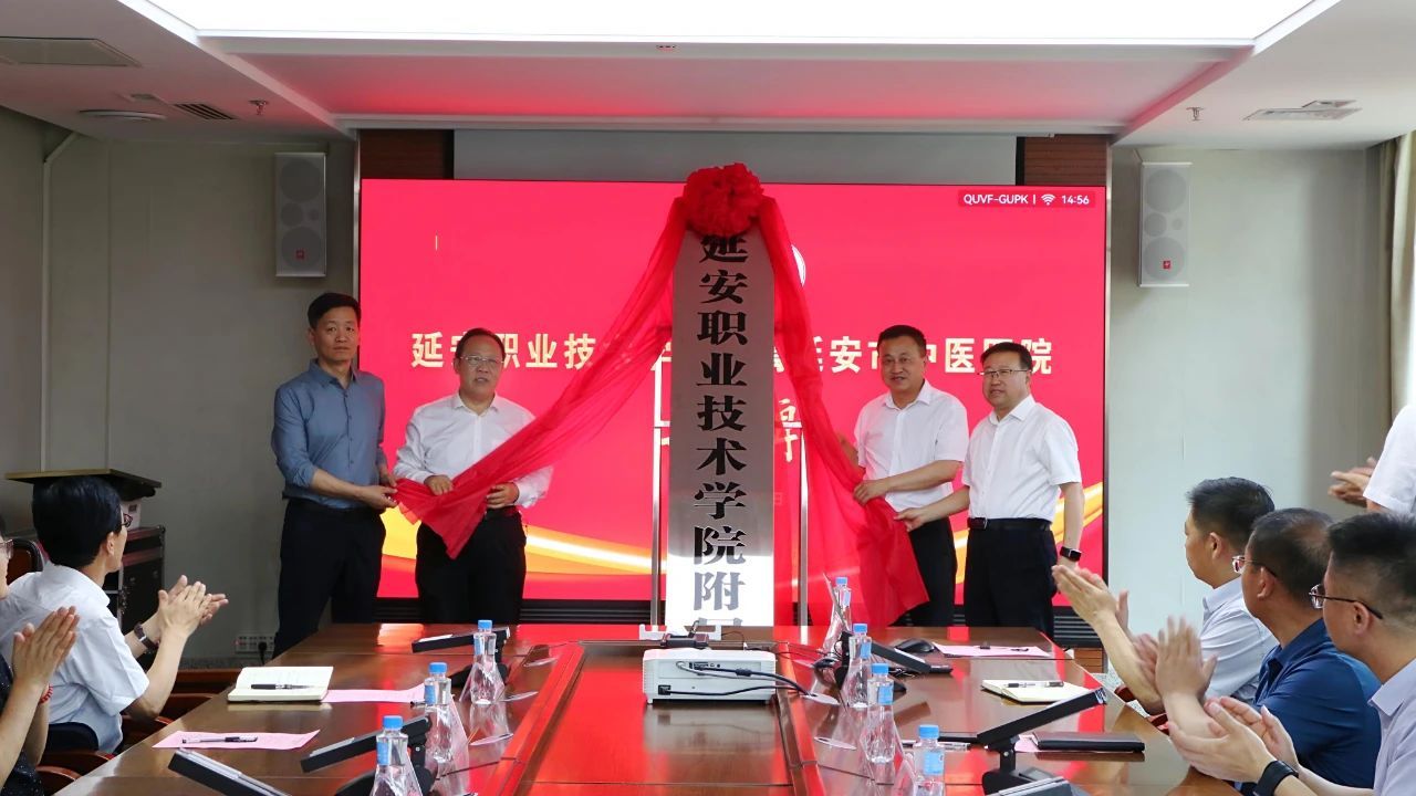 6月6日下午,延安职业技术学院附属医院揭牌仪式在延安市中医医院举行,这标志着学院与延安市中医医院的医教合作揭开了新篇章,踏上了新征程。学院党委副书记、院长牛永红,市卫生健康委员会党委副书记翟建军,市中医医院党委书记刘雁冰出席并讲话。揭牌仪式由市中医医院委副书记李旭东主持会议。
