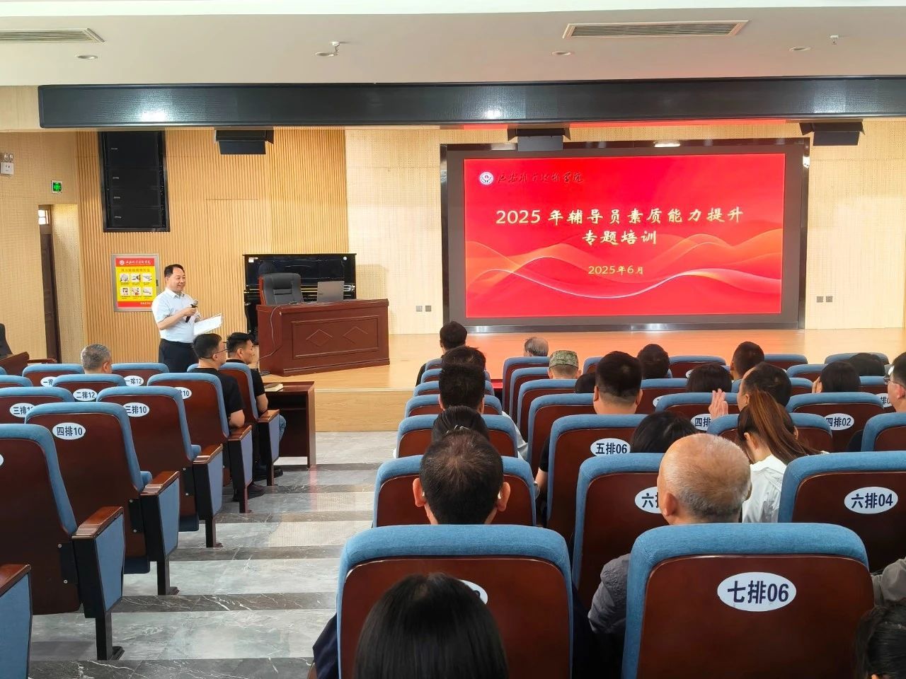 为进一步贯彻落实立德树人根本任务,推动学院“双高”建设,提升辅导员综合素质与大赛竞赛水平,6月6日,学院在学术报告厅举办“扎根圣地育新人立德树人建新功”2025年辅导员素质能力提升专题培训。学院党委委员、副院长姬凌宇主持会议,各系院党总支书记、学工人员及全体专兼职辅导员一百余人参加培训。