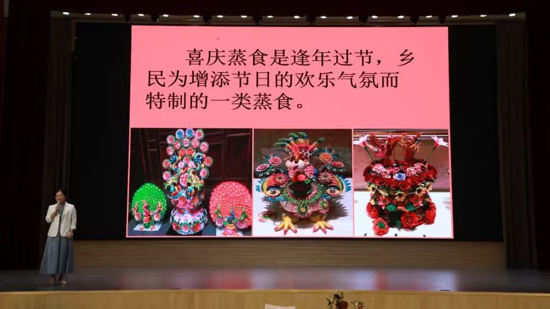 周景毅在致辞中指出,科技与文化是文明进步的双翼,本届科技文化艺术节以“技承匠心 智启未来”为核心,希望通过非遗进校园这类跨界融合活动,让同学们在实践中感受文化脉搏、开拓思维边界,真正践行“参与就在眼前、参与就能提高、参与就有快乐”的活动理念。接着,吕晓燕老师上台宣介,从韩城花馍的千年历史谈起,讲到个人坚守非遗传承的初心,表达了自己对当代青年传承的期许。