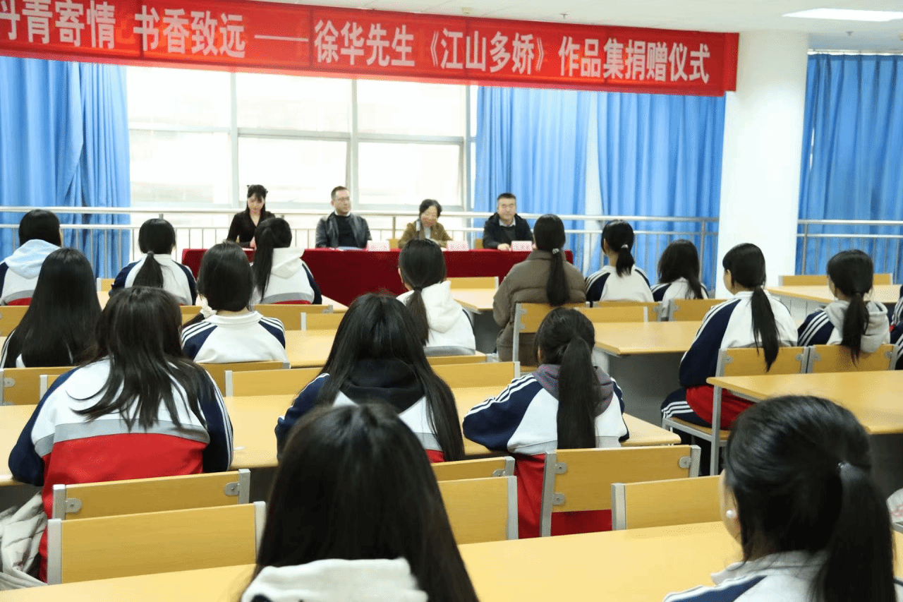 党云萍向徐华颁发捐赠证书。她表示,这份捐赠不仅是精美的画册,更是深厚的文化礼物,体现了徐华老师对延安教育事业的深厚情谊,此次捐赠的《江山多娇》作品集,将艺术理论与具体作品完美结合,为学院师生提供了宝贵的艺术资源。她希望师生们善用画集,在欣赏艺术之美的同时,感悟其中蕴含的文化自信与家国情怀,将其转化为学习和成长的动力。