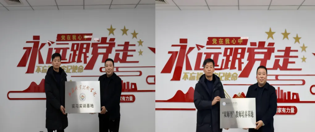 在签约授牌环节,院企双方代表共同签署了校企合作协议,并举行了“延安职业技术学院实习实训基地”“延安职业技术学院双师型教师培养基地”揭牌仪式。孙佳与刘倩芳分别表示,延安职业技术学院在应用型人才培养方面成果显著,与盛世跨洋(延安)产业园的发展需求也非常契合,期待未来双方能在更多领域开展深度合作,实现资源共享、优势互补,共同为延安“7+25”产业发展培养更多优秀人才。