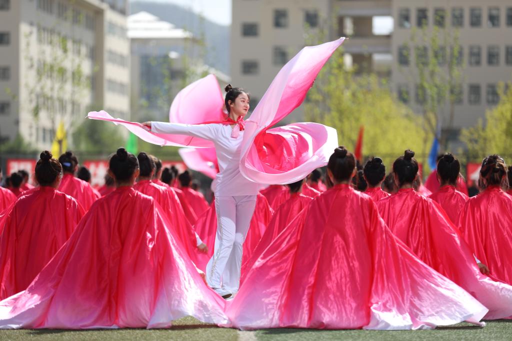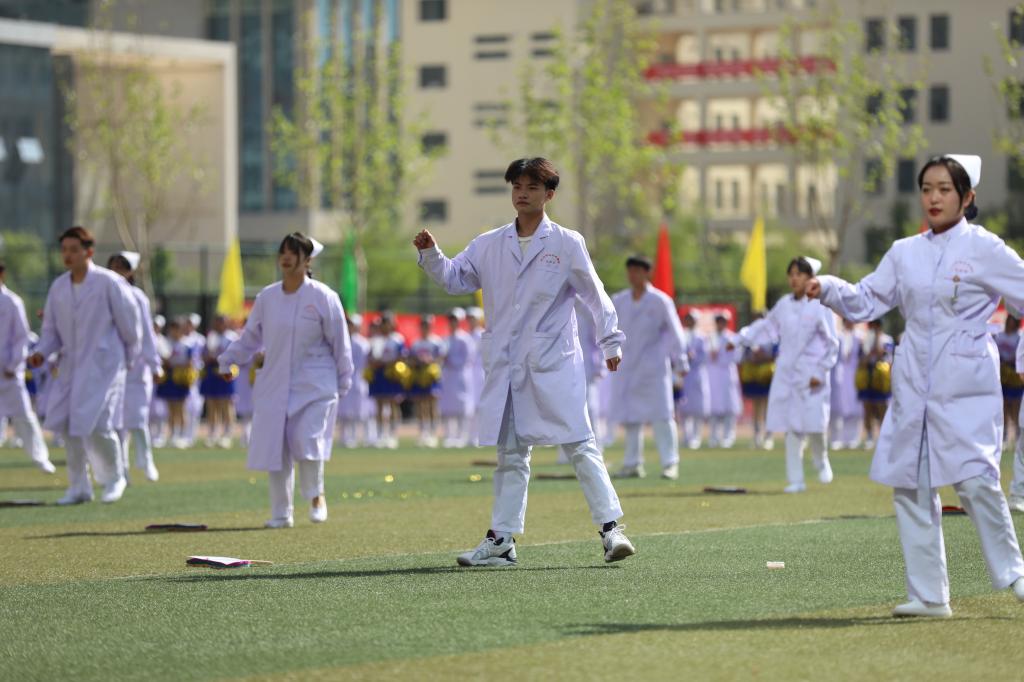 主题为《青春向党 笃信笃行》的文体表演在五百多名士官生表演的《“六魂”文化筑根基 圣地士官展新姿》中拉开序幕。他们展棍术、挥拳术、打腰鼓,步伐整齐、动作有力,场面壮观,充分展现了军中男儿的飒爽风姿。医学系表演的健身操和礼仪《我们是圣地天使》,统一的服装,灿烂的笑容,青春活泼,知书达礼,尽显学子的精神风貌和文明形象。艺术系等八系联合表演的第9套广播体操《青春恰时来 筑梦向未来》,他们矫健的身姿,整齐的动作,凸显了当代青年强健体魄、热爱生活和憧憬明天的美好愿望。四百名师范教育系学子表演的大型舞蹈《青春向党 时代向上》,衣着鲜艳,舞姿优美,抒发了延安职院师生永远跟党走、开创新时代的美好心声。
