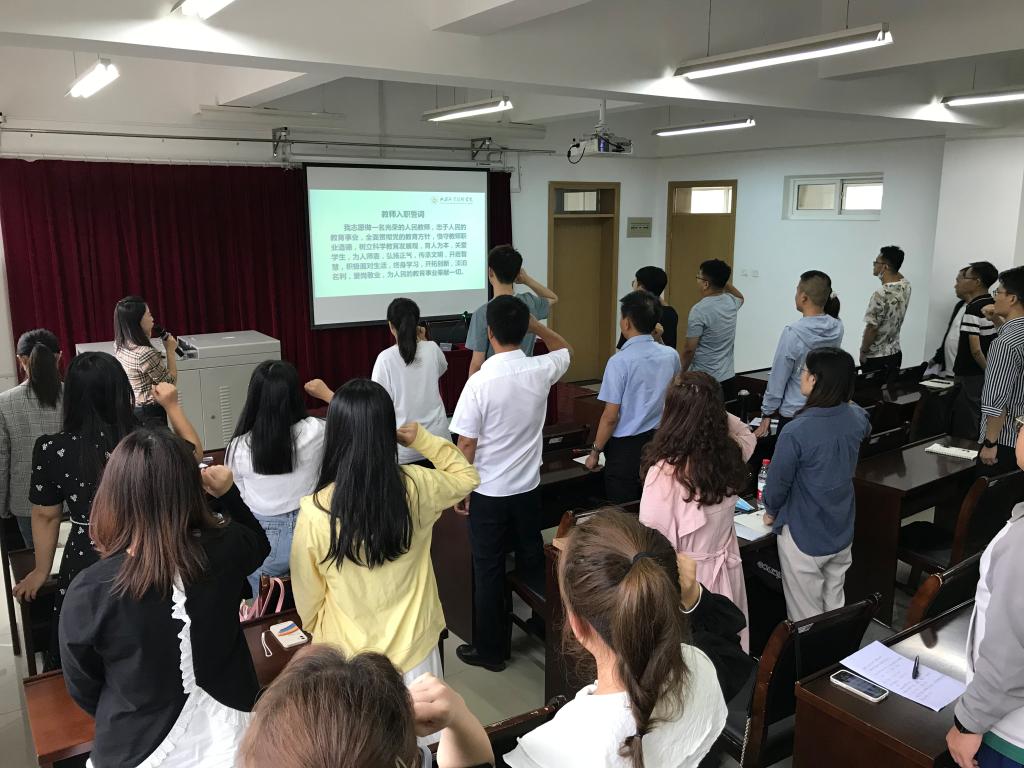 8月30日上午,延安职业技术学院2021年新入职教师培训班开班仪式在12号教学楼B206室举行。学院党委书记呼世杰、院长全卫强出席开班仪式,各部门相关负责人及34名新入职教师参加。