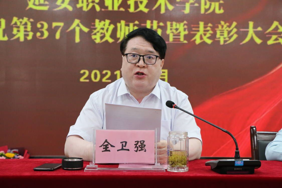 全卫强代表党委、行政向在教学、管理和服务一线默默耕耘、辛勤工作的全体教职工致以节日的祝福和忠心的感谢,向受到表彰的师德标兵、优秀教师、先进教育工作者、优秀辅导员(班主任)表示热烈的祝贺。全卫强指出,学校始终坚持以习近平新时代中国特色社会主义思想为指导,紧紧围绕“双高”校建设要求,全面贯彻全国职教大会精神,在教育综合改革、师资队伍建设、校企合作发展等方面都取得了显著成绩,这些成绩与老师们甘于奉献、矢志不渝的崇高追求,爱生乐教、爱校如家的使命担当和坚守初心、砥砺奋进的高尚情怀密不可分,必须倍加珍惜这来之不易的发展势头,把更多的精力投入到干事创业中去。
