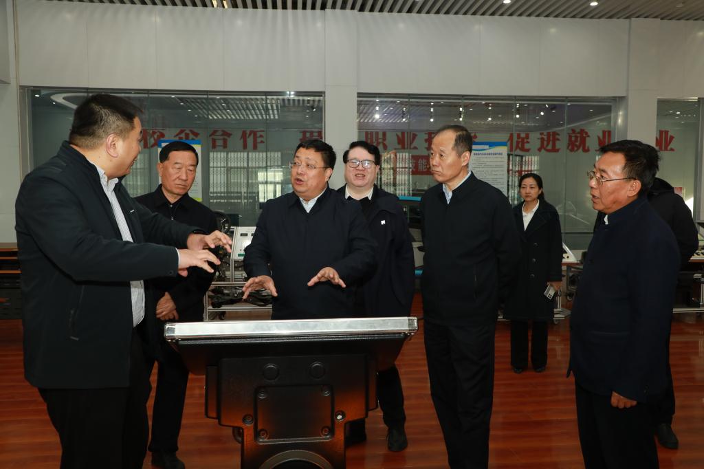 李忠民一行实地考察了学院石油和化学工程系实训工厂、北方智扬汽车实训中心、航运工程系实训室和军士生公寓,听取了学院关于专业设置、军士生培养、产教融合、省级“双高”校建设等各方面工作介绍。