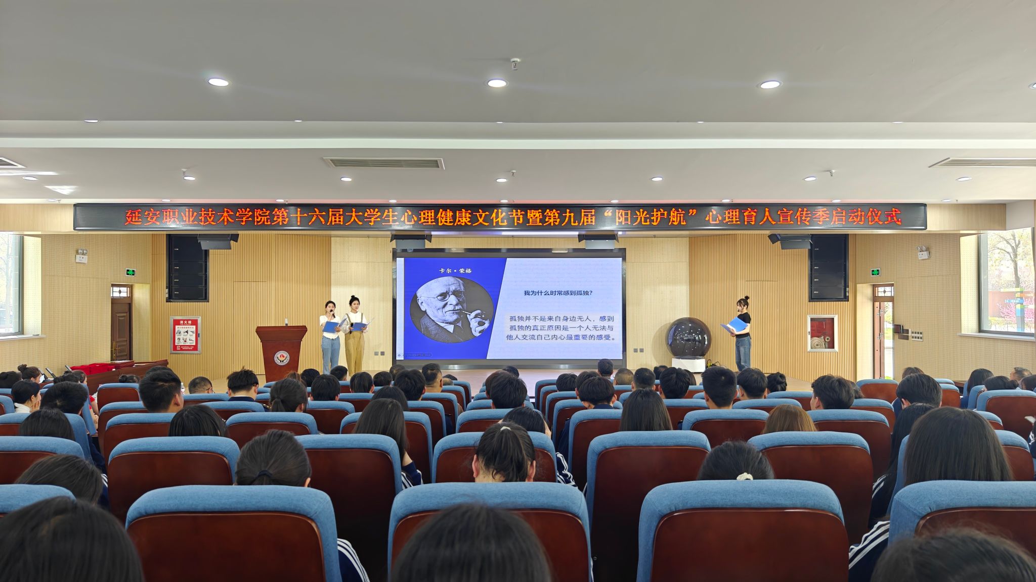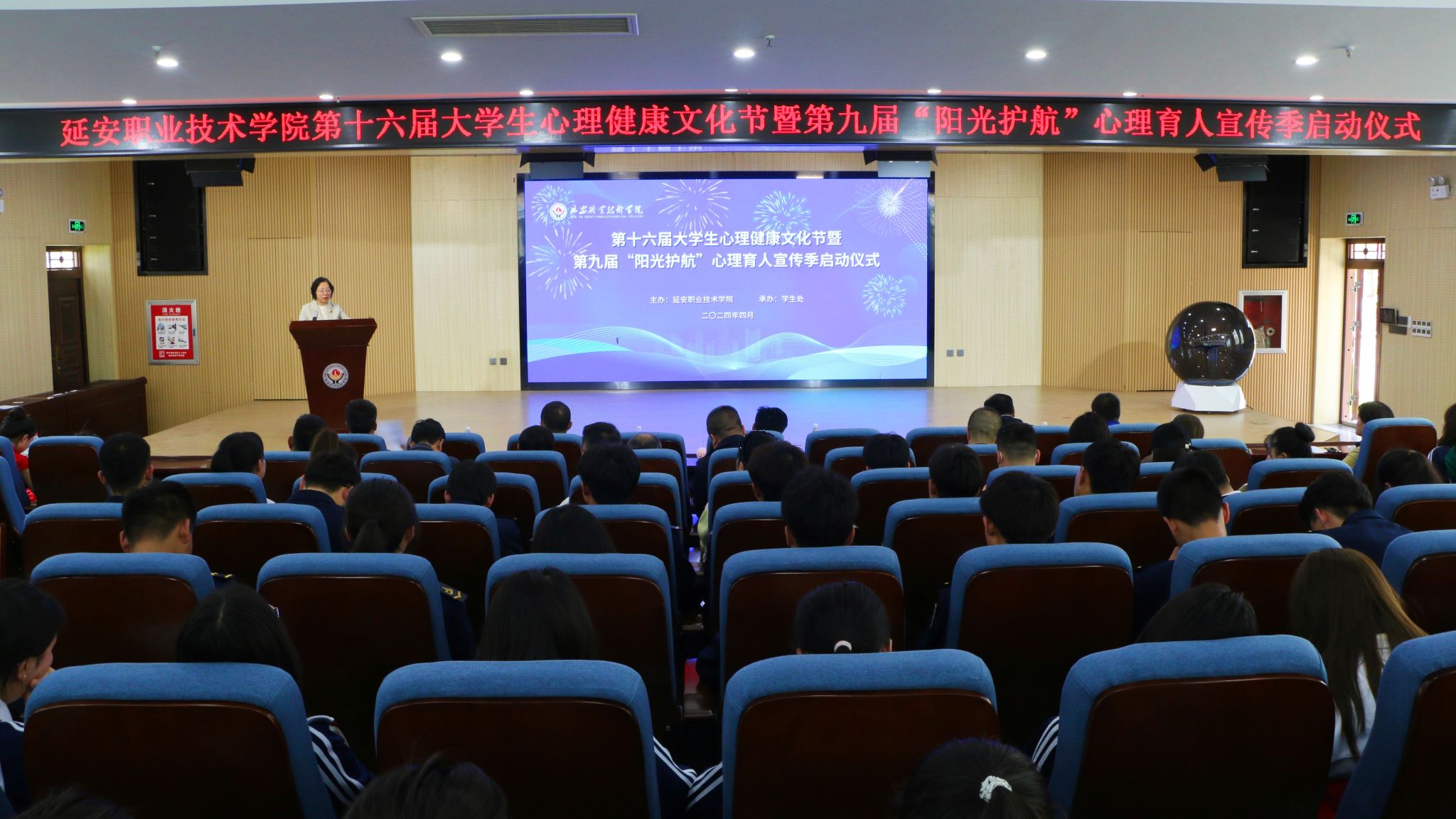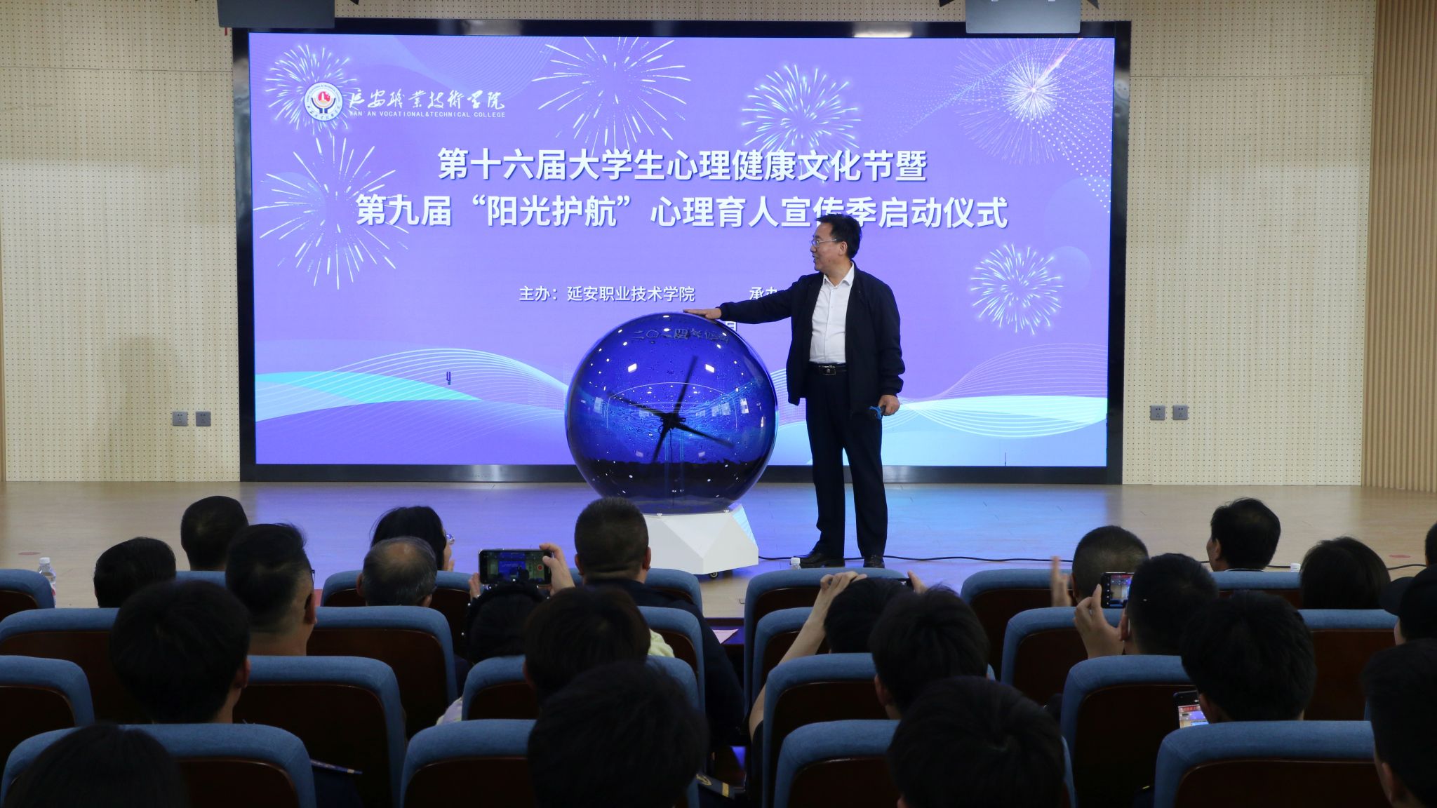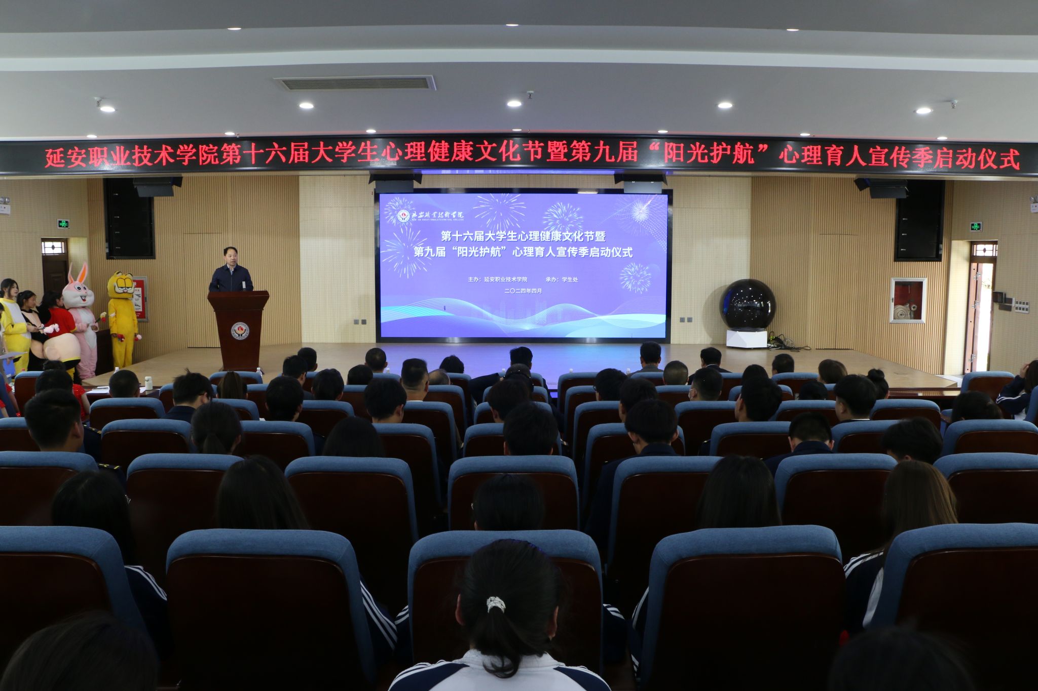 4月12日下午,延安职业技术学院举行了第十六届大学生心理健康文化节暨陕西省高校第九届“阳光护航”心理育人宣传季启动仪式。学院党委书记冯奇海出席并宣布活动正式启动,党委副书记党云萍,党委委员、宣传部部长、党政办主任惠立彦出席启动仪式。大会由党委委员、副院长姬凌宇主持。相关处(室)负责人、各系(院)党总支书记、二级心理辅导站负责人、辅导员和学生代表参加。