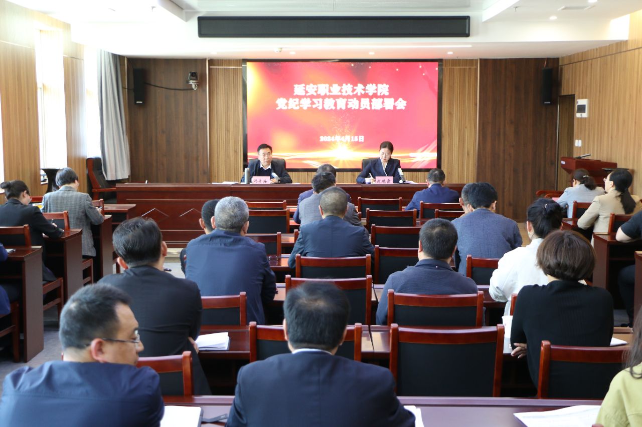 4月15日,延安职业技术学院召开党纪学习教育动员部署会。党委书记冯奇海作动员讲话,党委委员、纪委书记刘晓霞主持并传达党纪学习教育有关文件精神,学院各党总支、直属党支部负责人、纪委全体干部参加会议。