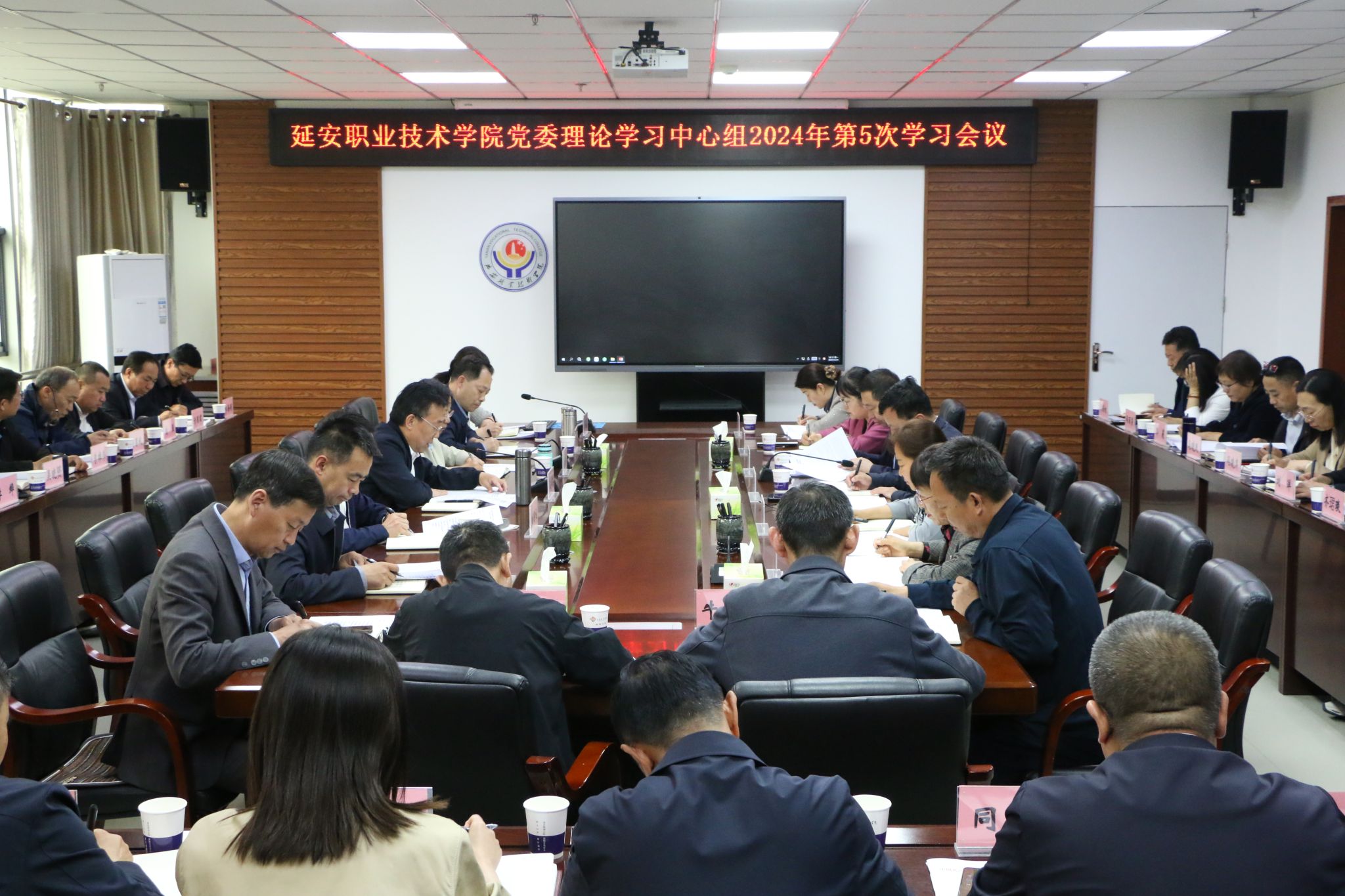 4月29日下午,延安职业技术学院党委理论学习中心组举行2024年第5次集体学习会议,传达学习习近平总书记主持召开新时代推动西部大开发座谈会时的重要讲话精神,组织学习《中国共产党纪律处分条例》总则和分则第六、第七章内容,传达学习《中国共产党党员网络行为规定》《党政机关国内公务接待管理规定》《新时代陕西省教育系统党员领导干部进一步加强党风廉政建设十条措施》等文件精神,观看了有关警示教育片。学院党委书记冯奇海主持会议。