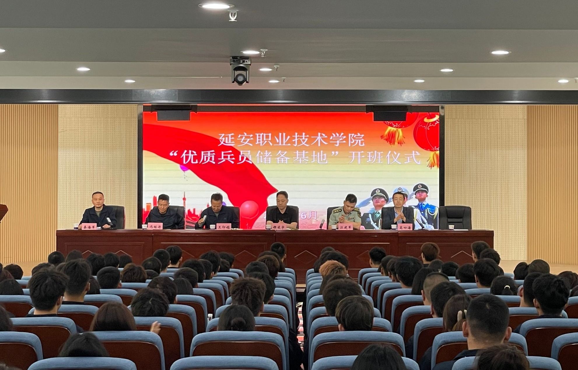 为更好宣传和普及国防知识,增强学生国防观念,积极动员广大学生响应国家征兵号召,提升国防建设人才储备,加快学院优质兵员储备基地工作建设,6月3日下午,学院举行优质兵员储备基地开班仪式。学院党委委员、副院长姬凌宇,宝塔区人武部副部长汪建军,学生处、各系院相关人员以及120名基地学员参加会议。
