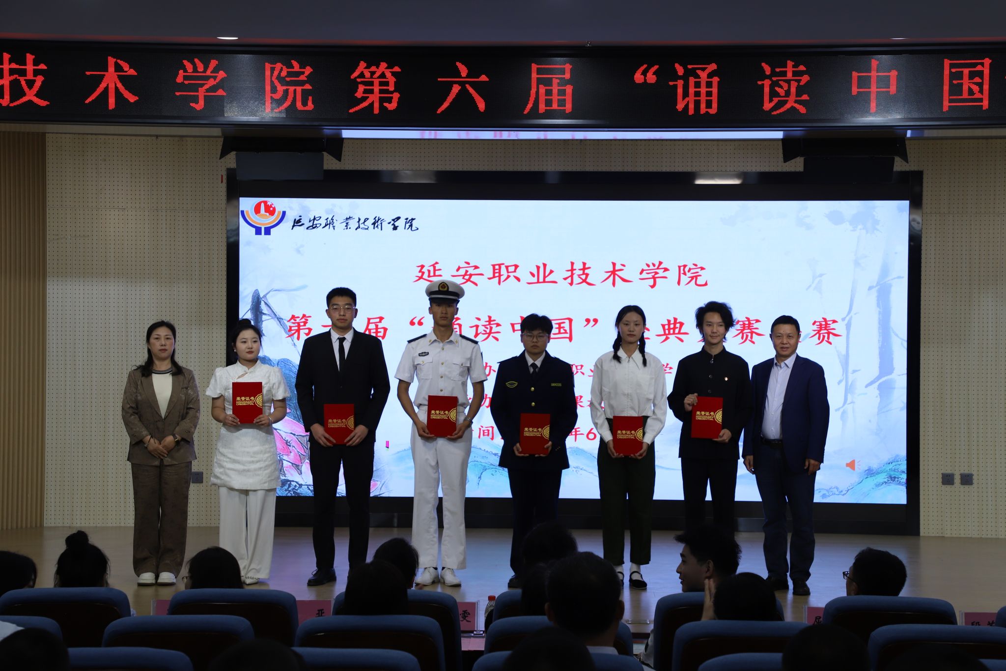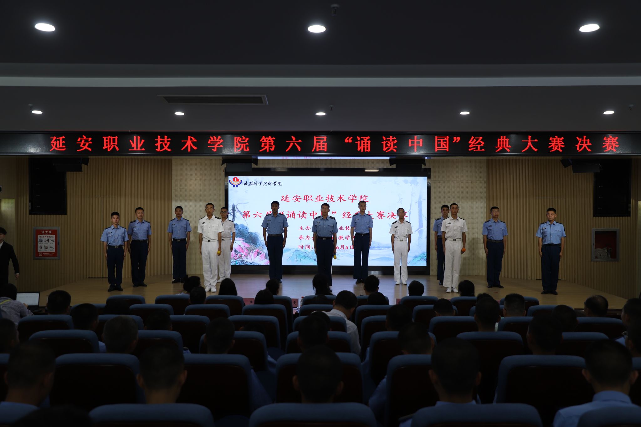 6月5日下午,延安职业技术学院第六届“诵读中国”中华经典诵读大赛在学院第二阶梯成功举办。