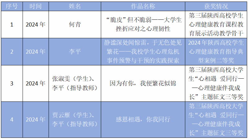 近日,陕西省委教育工委公布了第九届陕西高校“阳光护航”心理育人宣传季省级实践活动的获奖名单。延安职业技术学院共获奖4项。其中,二等奖2项,三等奖2项。
