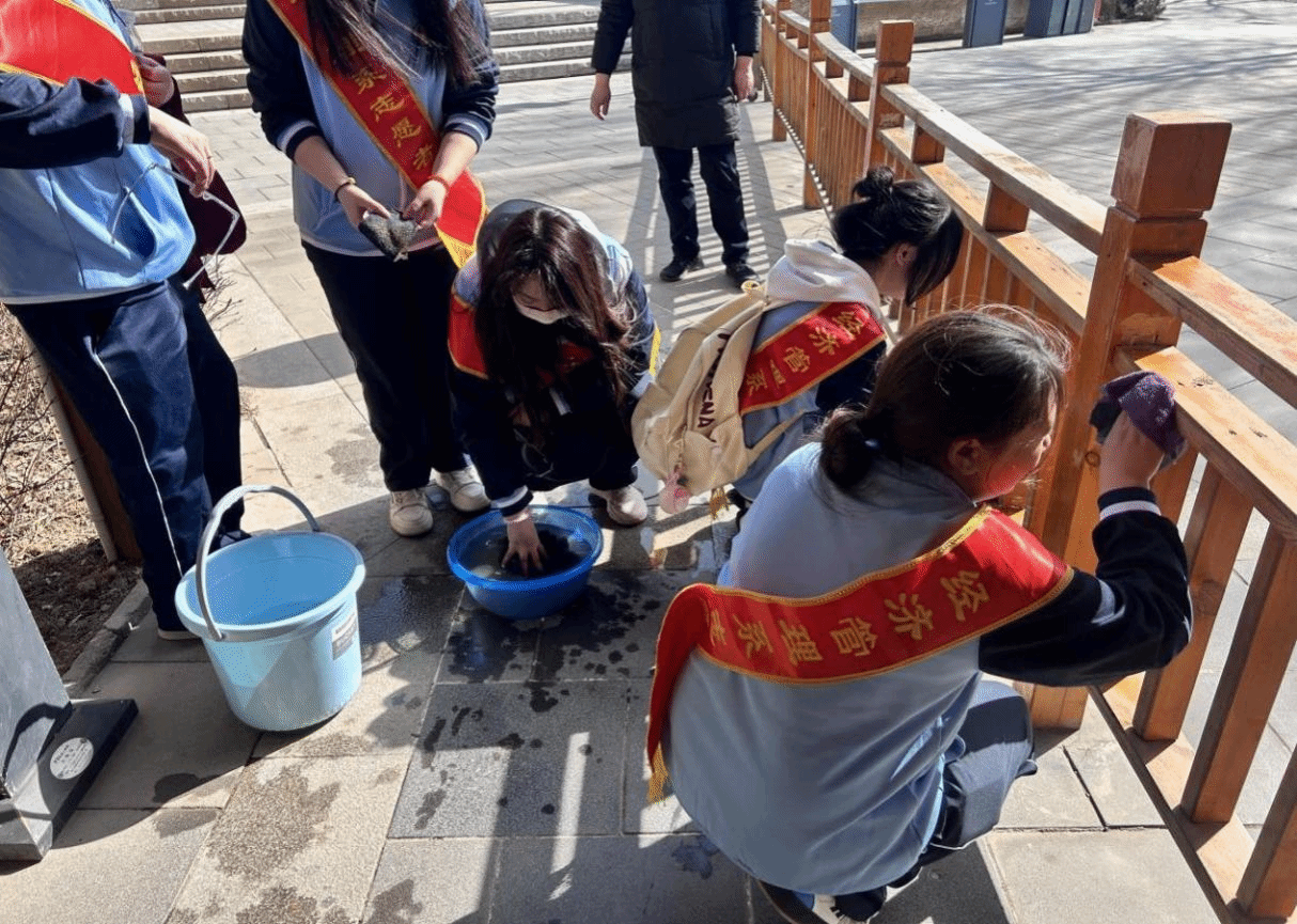 活动现场,同学们认真清理垃圾、擦拭栏杆,上演着一场生动的学雷锋劳动教育现场课。在欢声笑语中大家边劳动、边思考,大数据与会计专业学生思考着怎样给垃圾分门别类,丢进不同的“账户”桶;电子商务专业的学生则是谋划怎样通过“红色文旅”直播间开展环保理念宣传更为高效……