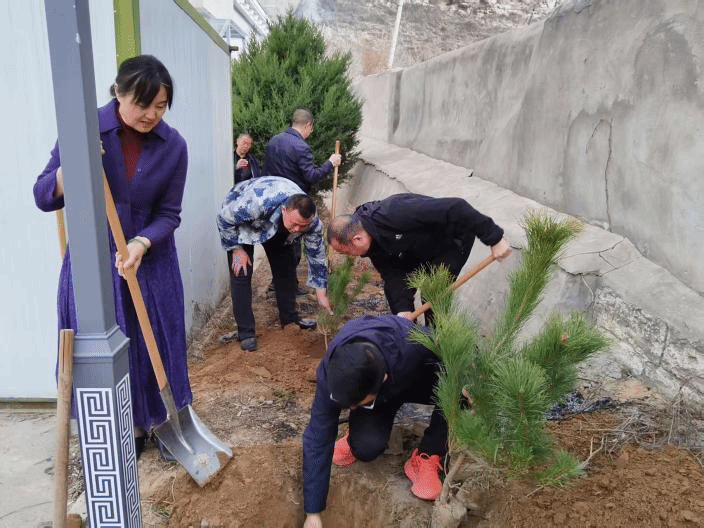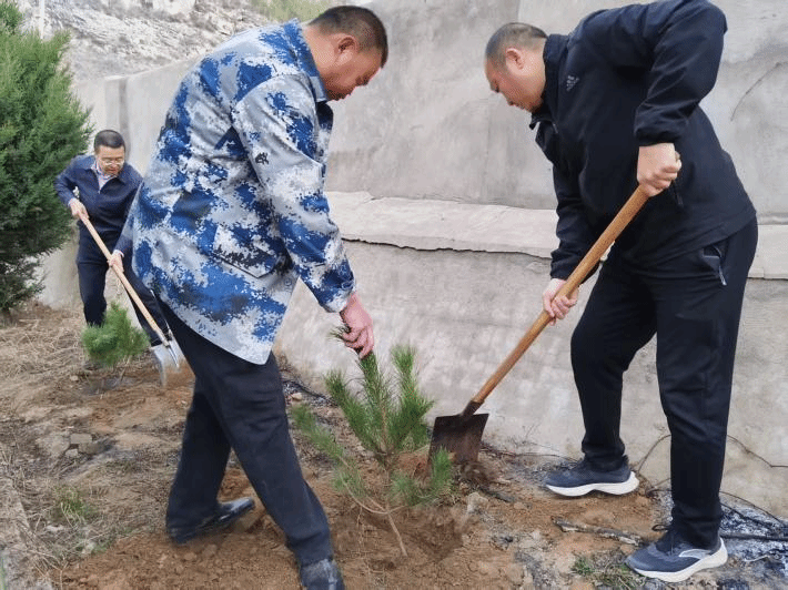 在活动现场,大家团结有序、干劲十足,有的用锄头除草,有的挥锹铲土,有的扶苗填坑,有的提水浇灌,配合十分默契,经过辛勤劳动,新苗在春日暖阳中“安家落户”。