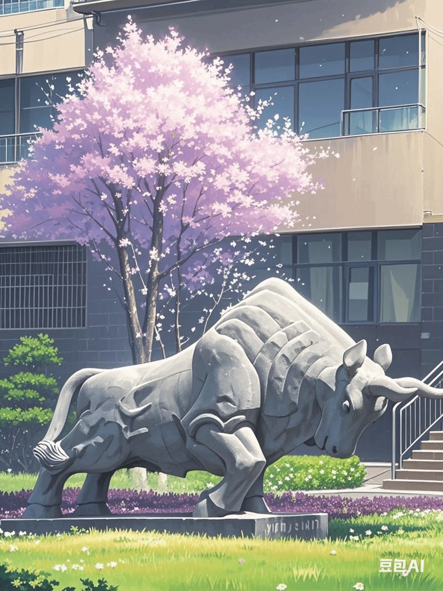 那雄浑有力的公牛石雕