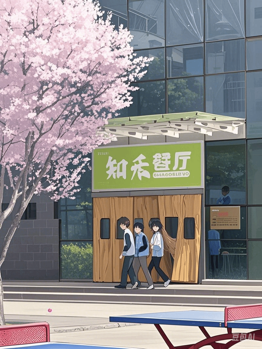 餐厅门口的樱花怒放着