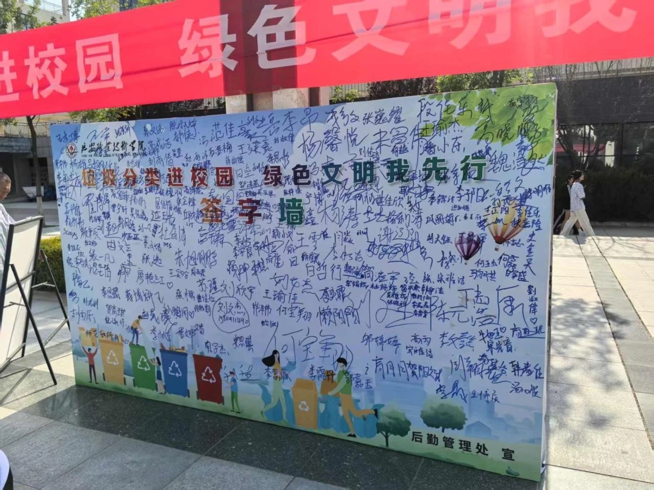 活动现场,后勤管理处和保洁公司向师生发放垃圾分类宣传彩页3000余份,组织师生学习了垃圾分类投放标准。开展了垃圾分类知识有奖竞答和垃圾分类实践投放,向参与活动的师生发放小礼品。教育引导师生准确分类并投放垃圾,做到无公害和可利用处理。千名师生在“垃圾分类进校园,绿色文明我先行”签字墙上签名。