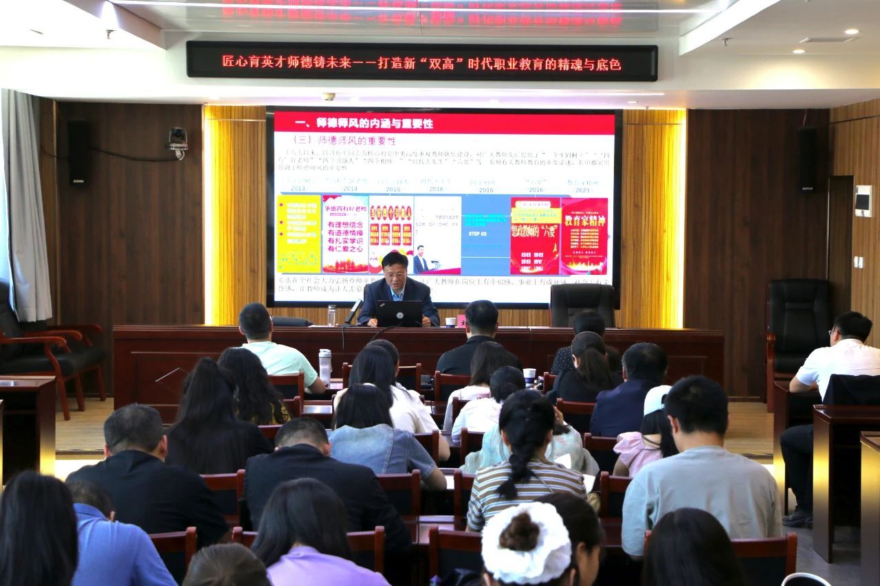 6月4日下午,延安职业技术学院邀请延安大学刘瑞儒教授作题为《匠心育英才师德铸未来——打造新“双高”时代职业教育的精魂与底色》的师德师风建设专题报告。学院100余名教师聆听了报告。学院党委委员、组织人事处处长任艳芳主持报告会。