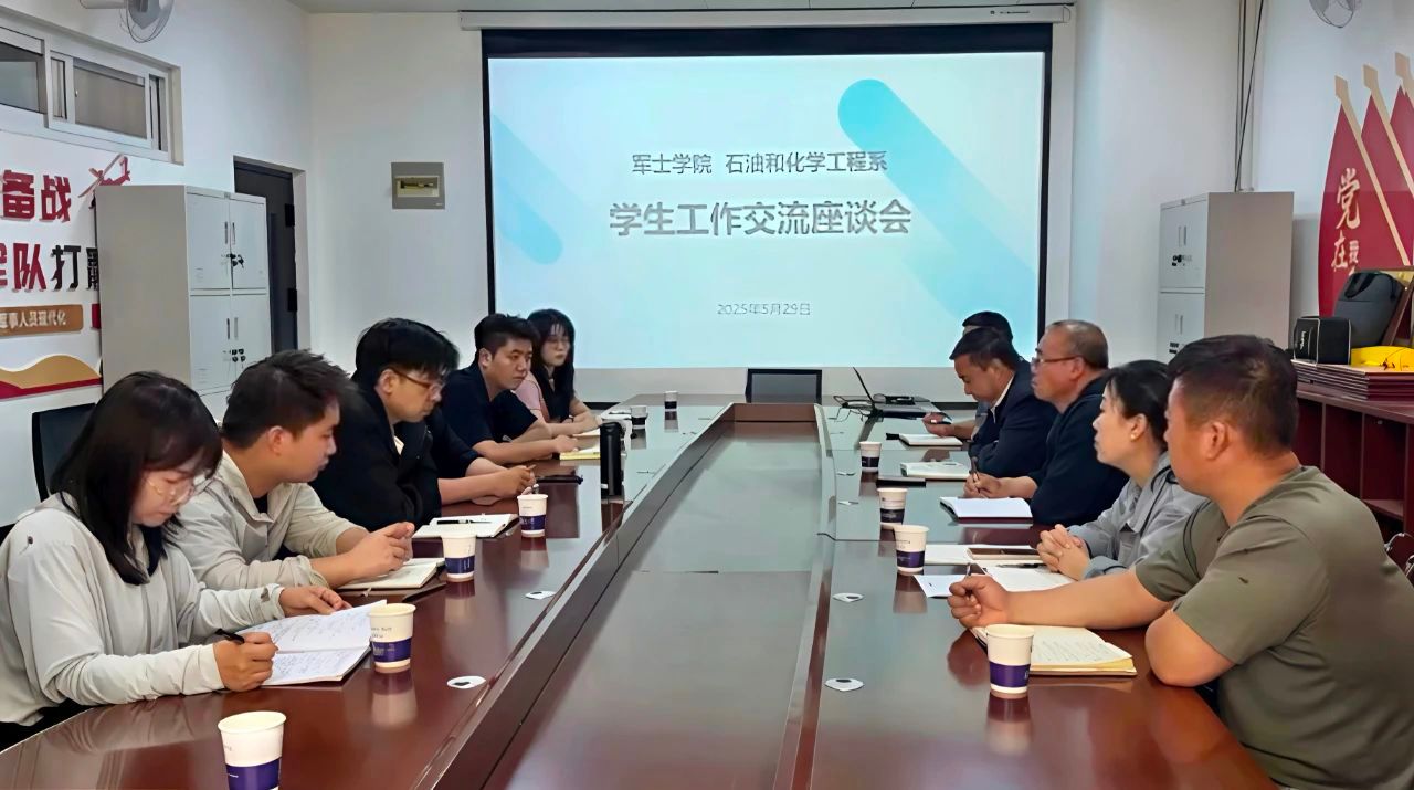 为进一步加强院系间的沟通协作,提升学生工作水平,促进学生工作高质量发展。近日,石油和化学工程系与军士学院进行学生工作座谈交流。双方主要负责人、辅导员围绕学生管理、学风建设、思政教育、国防特色培养等内容展开深入探讨。