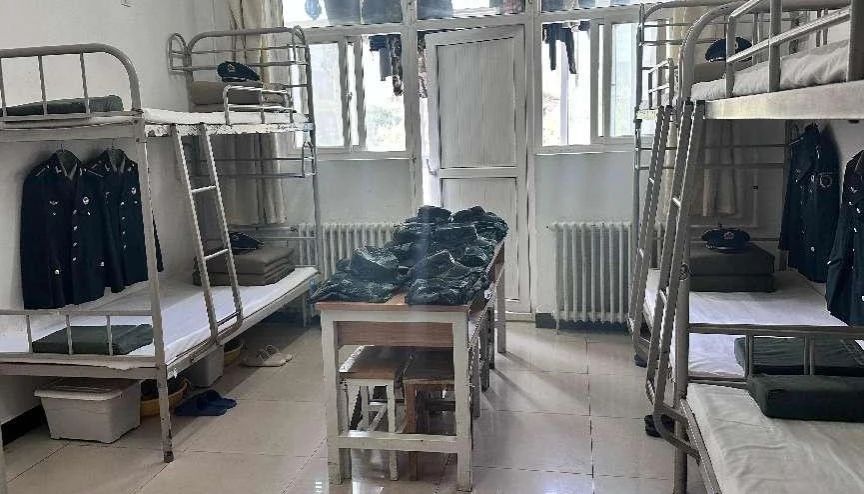 在军士学院宿舍里,学员现场演示内务整理全流程:从被子叠放(“压、折、挤、掏”四步成型“豆腐块”)、床铺平整,到洗漱用品“一线化”摆放、物品分类归置,每一环节均体现“直线加方块”的军事美学。