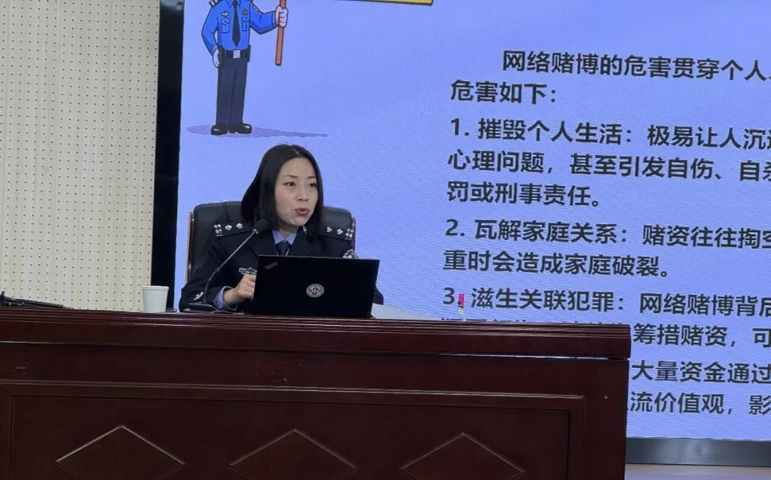 刘警官聚焦电信网络诈骗、网络赌博、网络谣言、网络暴力等常见涉网犯罪类型,结合近期典型案例,深入剖析犯罪手段、作案特点及危害后果,详细讲解识诈防诈、信息保护的实用技巧,引导师生提升网络安全意识,不信谣、不传谣、不造谣,远离涉网违法犯罪,共同守护网络空间清朗,维护校园安宁。