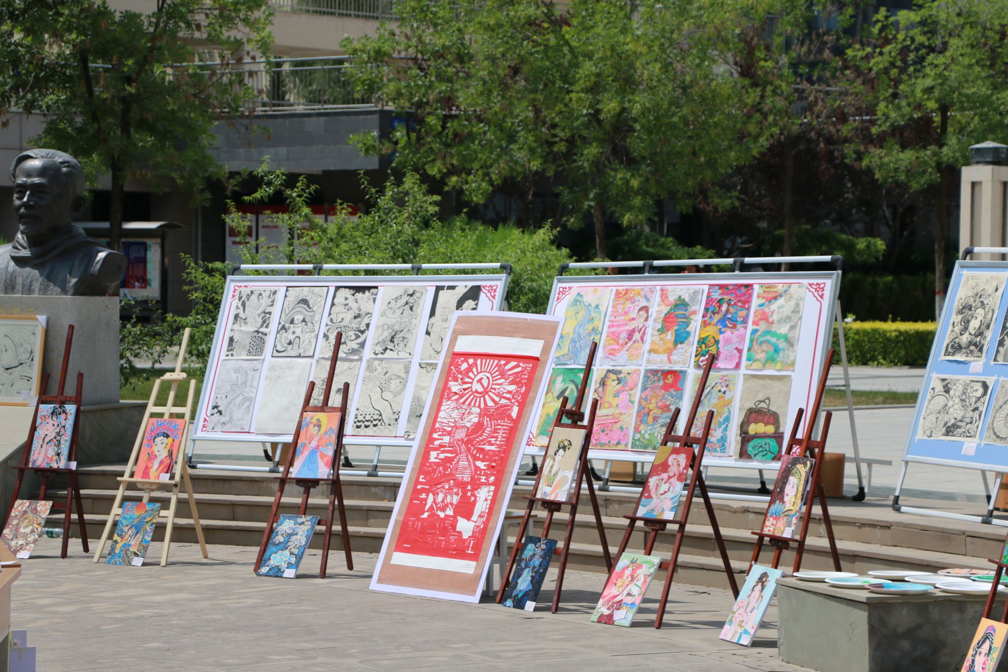 本次展出100幅手工作品,50件蜡染作品,50幅绘画作品,绘画作品展板8大块,100幅环创作品,剪纸70幅,沥粉画100幅,绘本50本。学院各处室、系部的师生前来观看,好评不断。
